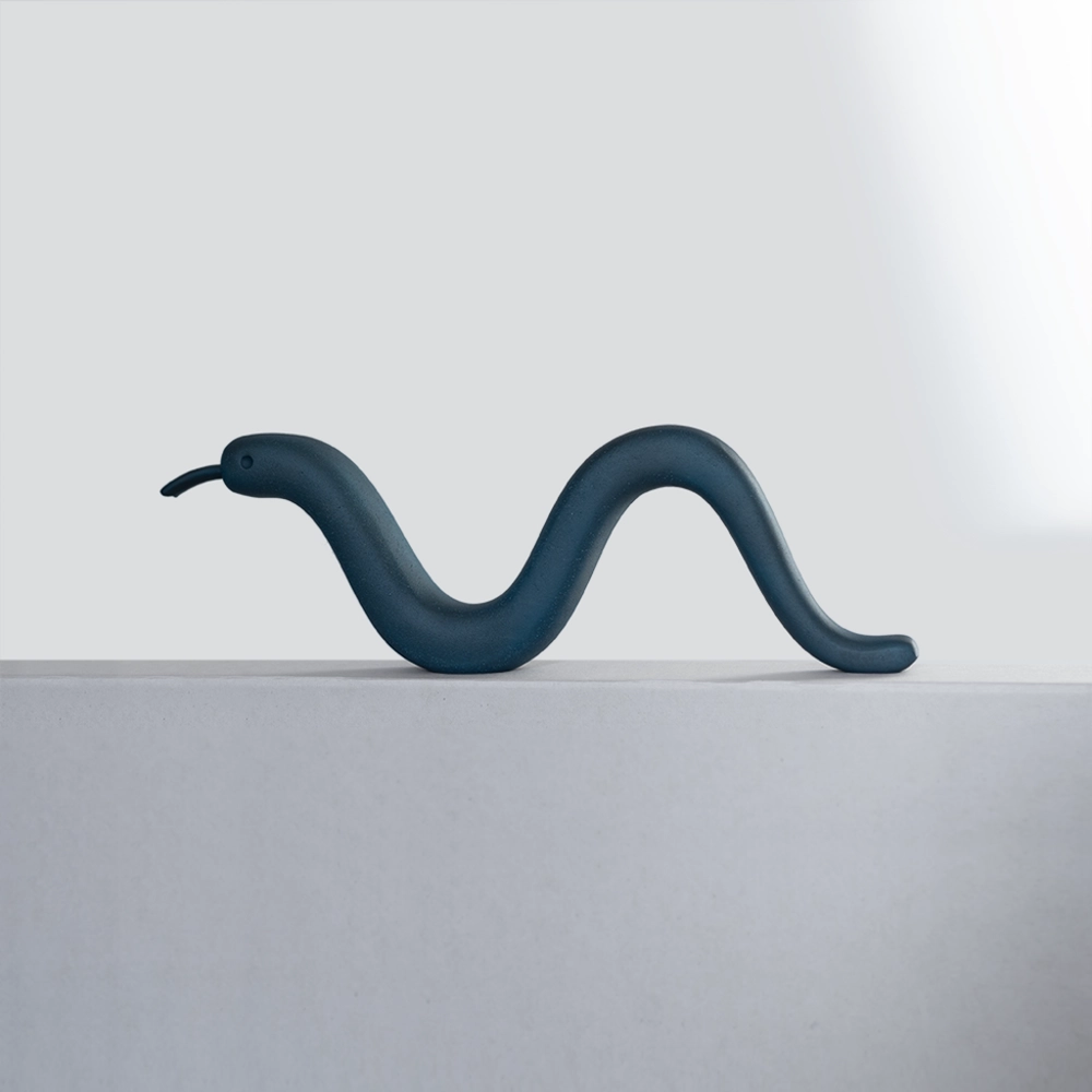 뱀의 유려한 곡선은 공간을 따라 순환하며 움직임과 생명력을 암시합니다.